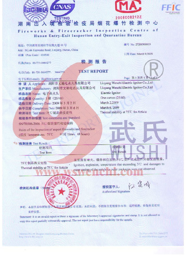 瀏陽市文馳電點火具有限公司(原培文電子點火器材廠),創(chuàng)建于1998年,是一家專業從事研制銷售電子點火產品的民營科技企業,是我國第1枚煙花用電點火頭生產者,是《煙花爆竹電點火頭國標》牽頭起草單位。公司位于中國“煙花之鄉”湖南省瀏陽市,地理位置優(yōu)越,交通便利。 我公司研制的對象是用電能引燃火藥、做機械功等預定功能的一次性使用的元件或裝置,包括電點火頭(英文名ElectricMatch or Electric Igniter,中文俗稱“電火柴”或“電發(fā)火頭”)、電點火管和延期電點火管;我們估且在以后的產品技術欄中將我們研究的產品統稱為電點火具,將電點火器看成是用于提供和控制供給電點火元件點火的電能器材;我們研究的電點火橋路有橋絲式、無橋絲···